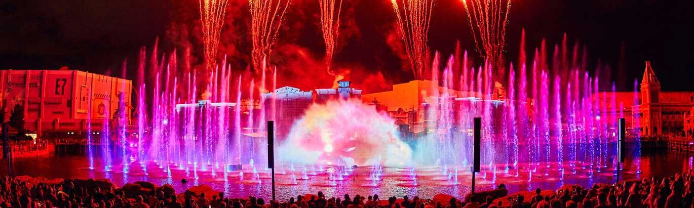 一个新的史诗级水秀在晚上照亮了佛罗里达州环球影城主题公园。这是法国国际水秀连续第二次承担该公园的大型水秀。 之前环球影城项目取得了巨大成功,给了我们很大自信,这一次法国国际水秀设计了一个更加大胆和具有纪念意义的项目。 环球影城的“夜间表演”是对电影以及同名电影制片厂的颂歌。经典电影如《侏罗纪世界》、《速度与激情》、《卑鄙的我》、《小黄人大眼萌》和《哈利波特》,投射在七个总共超过150米的投影立面水幕上。 巨型投影是水秀的背景和支柱,与直喷、动态多轴摇摆喷和其他水特效等超过120种水效果共同完成表演。 这个大型水秀剧院使用了超过100米*30米的格栅。 该表演安装在一个100米的水上平台,该平台承载整个表演,水特效稳定、完美呈现,维护设备过程得以简化。该水秀每晚有两次表演,惊艳的烟花和神奇的水芭蕾相互辉映,电影开始展开,让人惊叹。 一个承载整个表演的100米水下平台   [layerslider_vc id=”47″] 探索我们更多案例 您被触动了吗 ?