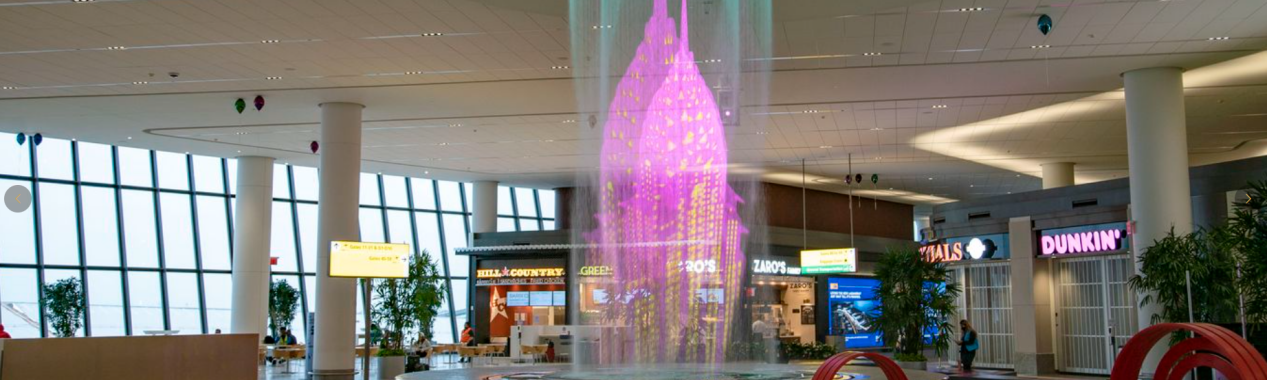我们的数码水帘加入纽约拉瓜迪亚机场基础设施的全面改造中,为机场用户提供一个独特的水秀表演。 价值51亿美元的B航站楼重建项目是美国航空史上最大的公私合作项目:它包括了我们的水秀作品以及多个艺术作品,为乘客在匆忙的旅途中提供了独特的艺术体验。 我们的双层数码水帘是世界上唯一一个位于机场内的水秀表演,具体位于拉瓜迪亚机场4楼到达和出发大厅。 该水秀由高7.5米,直径2米和3米的圆形数码水帘组成。450个精细喷头都可单独控制,通过编程将水打造出文字和视觉效果来表演水上芭蕾舞。 除了数码水帘,还有灯光投影、视频、激光投影及两个媒体服务器共同合作以实现由编剧、程序员、视觉艺术家和音响工程师组成的团队所创造的精彩表演。 此外,还有3台后置投影仪为数码水帘提供360°投影。 我们的设备(数码水帘及跳泉)不仅符合美国的电气标准(UL标准),同时还采用了符合机场环境要求的水过滤设备,并用特定工艺对水进行特殊软处理。 上午7点到晚上10点之间每隔15分钟两场以纽约为主题的标志性表演轮番上演。 这些表演在完美展示数码水帘应用的水切割技术和投影的同步性的同时,唤起人们对纽约和美国文化的经典印象。 https://aquatique-show.net/wp-content/uploads/2023/06/Terminal-B-Water-Feature-Show-Iconic-NY-.mp4 探索我们更多案例 您被触动了吗 ?